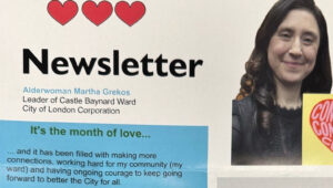 Despite living and working in the ward, for some reason we are not on the Alderwoman’s mailing list for her “Newsletters”.